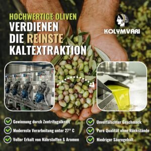 Dieses Kolymvari P.D.O. Olivenöl ist der absolute Standard, h?chste Qualit?t, toller Geschmack, gesund ¨C ich werde es immer wieder kaufen!