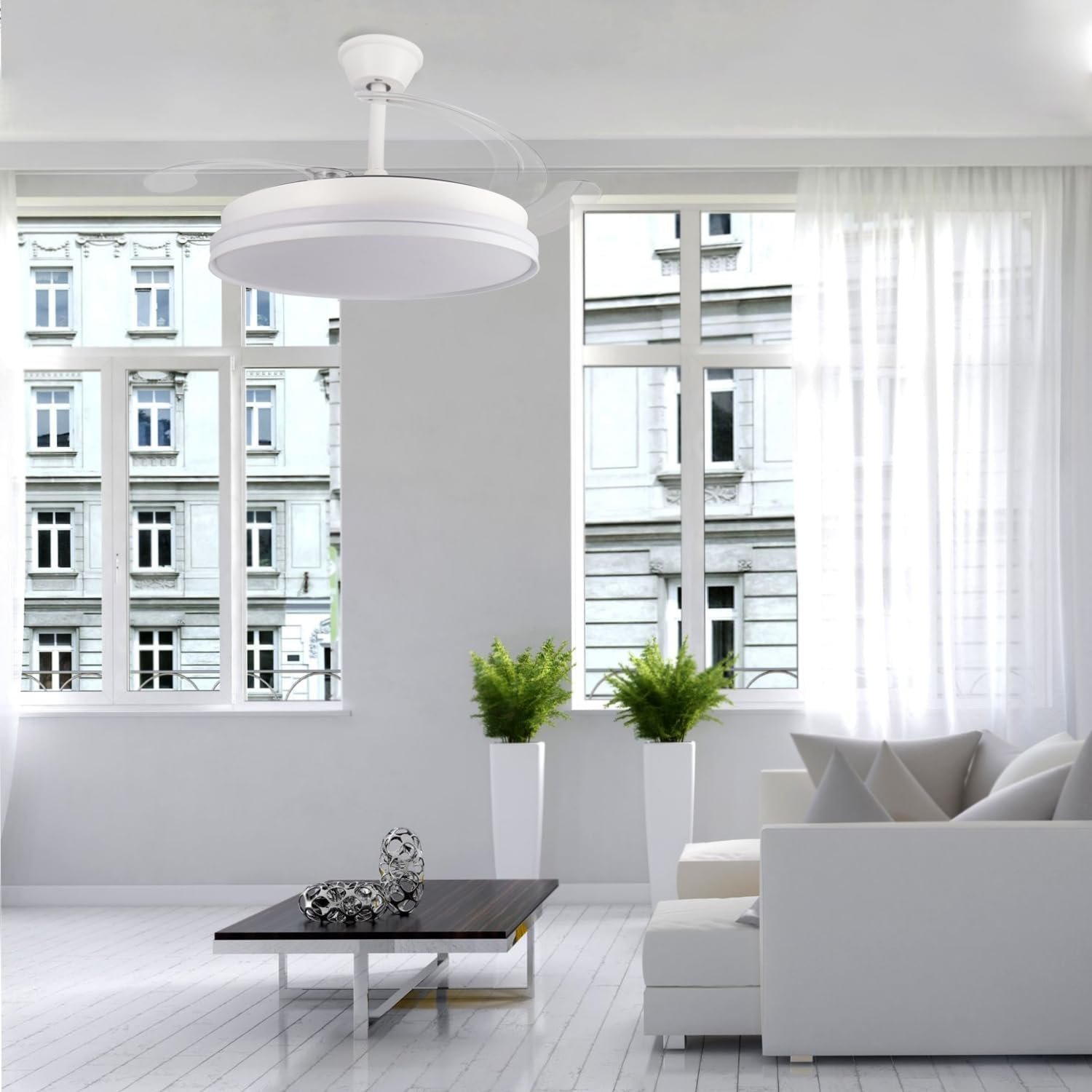30 reviews for Iluminashop – Ventilador de Techo con luz Led White Olga, Mando a Distancia, Motor DC, 6 velocidades, Silencioso, Aspas retráctiles, función verano-invierno, temporizador, CCT